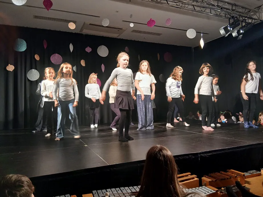 Na naši šolski božični so se s svojimi nastopi predstavili vsi razredi in šolski zbor. Posebna točka je bil nastop hiphop skupine iz varstva, ki je navdušil publiko. Prireditev je bila uspešna in lepo doživetje za vse otroke in njihove družine.